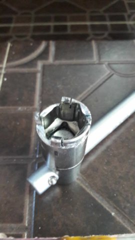 Top view of the socket after after all four notches have been cut.